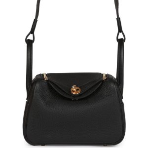 Hermes Mini Lindy Black Clemence Gold Hardware