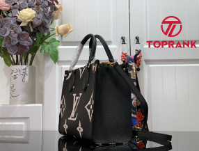 Fashioned from Monogram Giant canvas, the Onthego tote bag is as striking as it is practical. A Monogram Reverse pattern on the sides and handles creates a stylish contrast in color and scale. With its generous capacity, removable shoulder straps and iconic Toron top handles, this versatile GM model is an ideal bag for everyday wear.