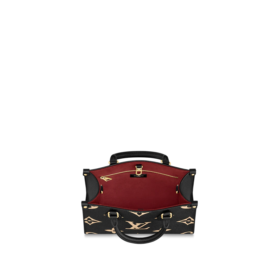 Fashioned from Monogram Giant canvas, the Onthego tote bag is as striking as it is practical. A Monogram Reverse pattern on the sides and handles creates a stylish contrast in color and scale. With its generous capacity, removable shoulder straps and iconic Toron top handles, this versatile GM model is an ideal bag for everyday wear.