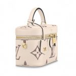 Inspired by the Monogram Nice Vanity, the Vanity PM handbag in Monogram Empreinte leather is a fashionably small bag with a distinctive shape. It is made from grained leather, embossed with the Giant Monogram motif. Its tassel zip pulls, ladylike top handle, and removable strap make it versatile and strikingly stylish.