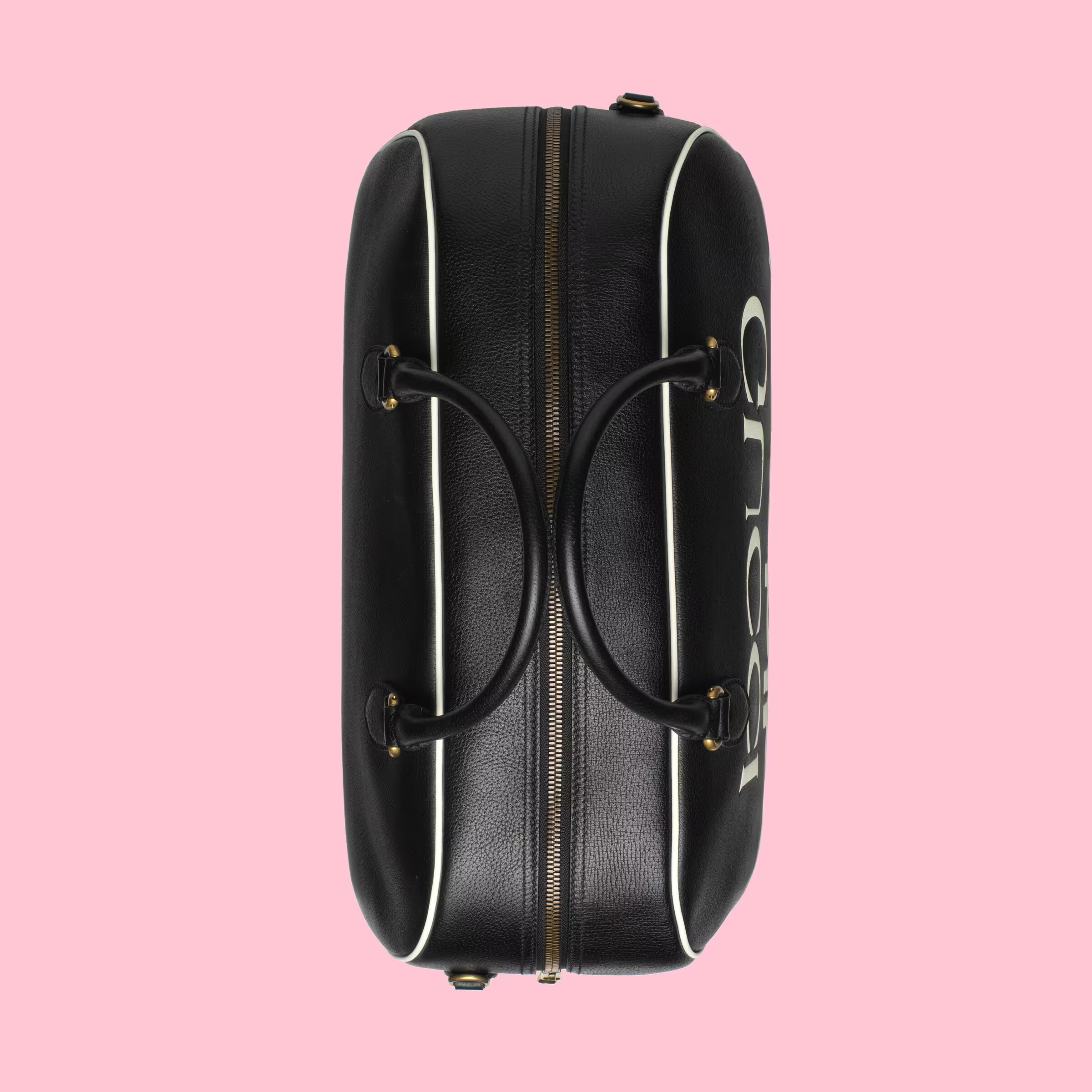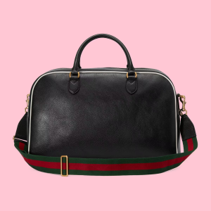 Part of the adidas x Gucci collection, this large duffle bag features the ‘Gucci adidas’ and Trefoil print. adidas and Gucci venture into a collection, where the Web juxtaposes with the three white stripes, and the GG monogram combines with the trefoil. Pulling inspiration from the Creative Director’s memories of the ’80s and ’90s, emblematic House’s motifs mix with those of the historic sportswear brand adidas resulting in a series of hybrid looks.