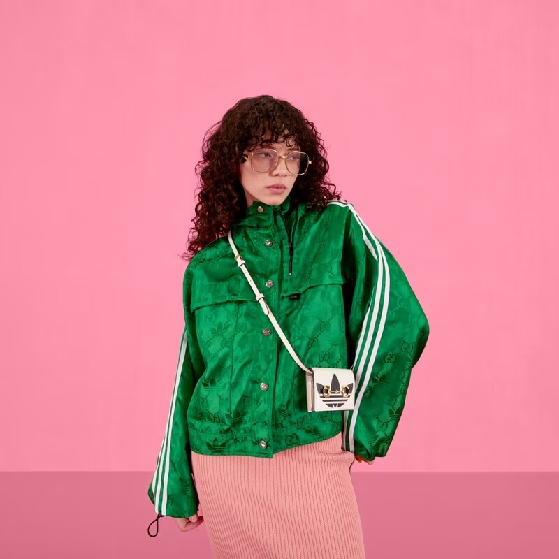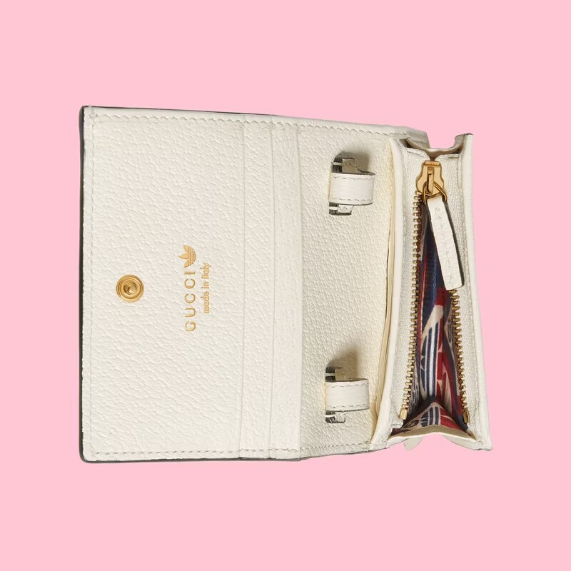 Part of the adidas x Gucci collection, this card case features the Trefoil print. Emblematic House’s motifs mix with those of the historic sportswear brand adidas. The collection sees both heritages encoded in a trio of lines, where adidas and Gucci combine archival emblems. Creative Director, Alessandro Michele pulls inspiration from his memories of the ‘80s and ‘90s for a collection that is both nostalgia-driven and contemporary.