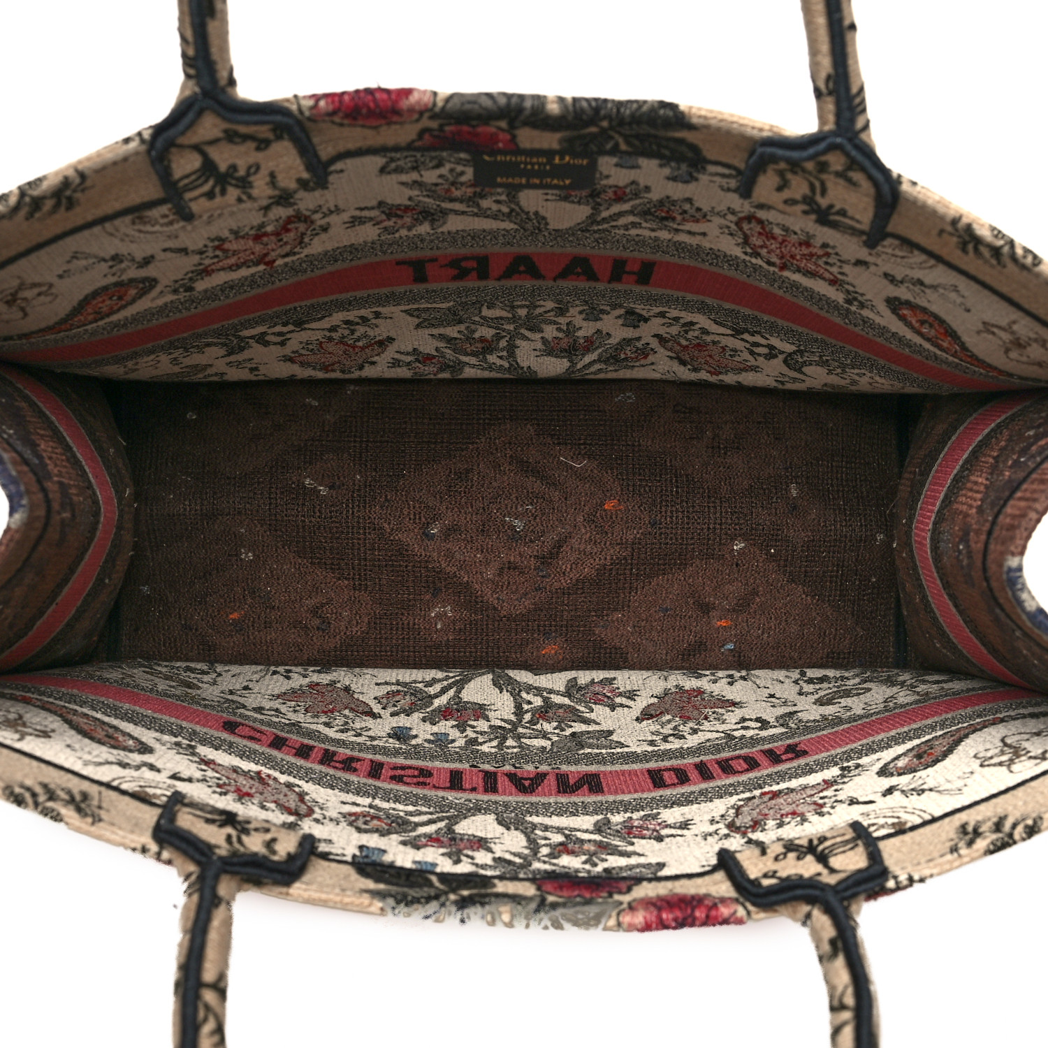 CHRISTIAN DIOR Canvas Embroidered Large Broderie Dior Flowers Book Tote Multicolor