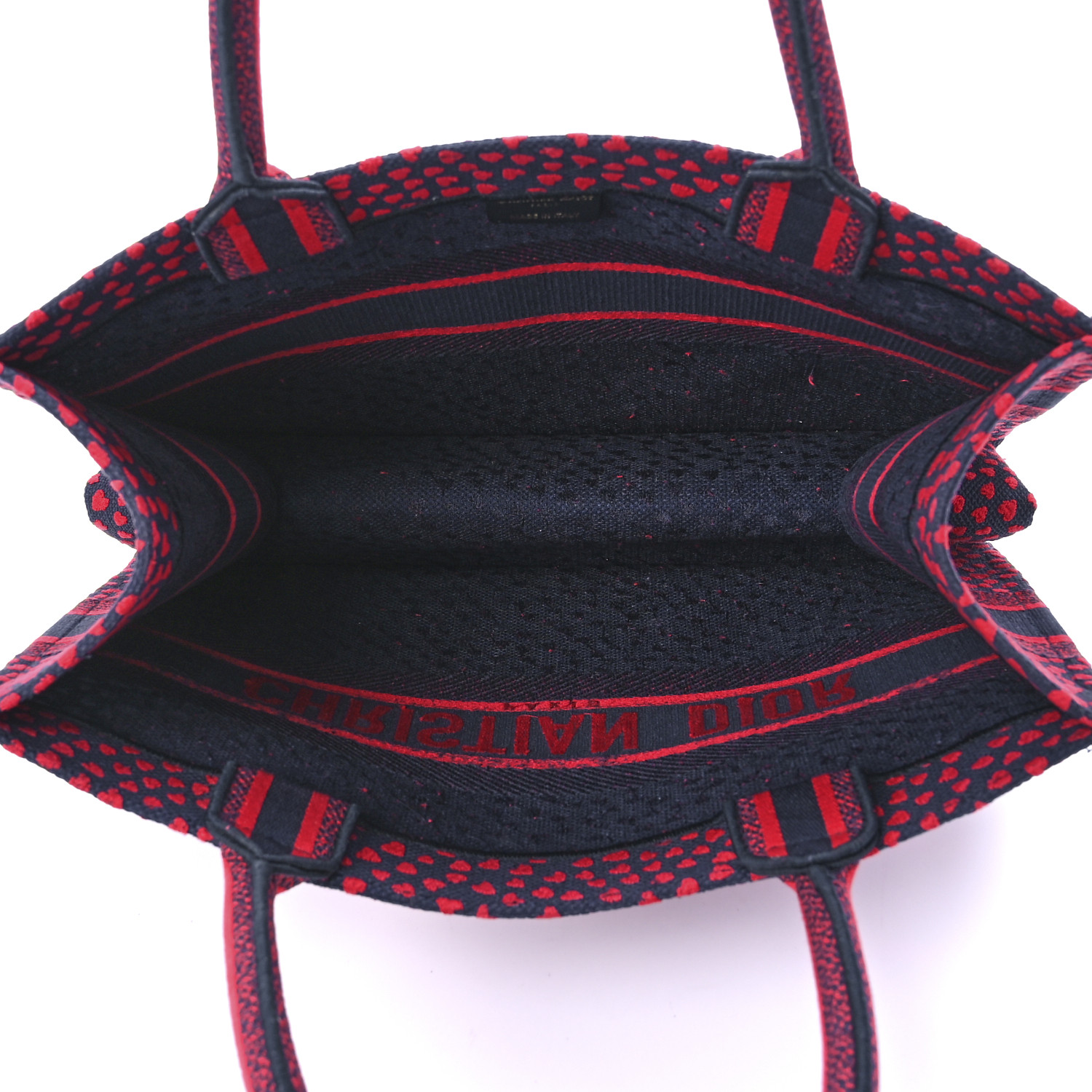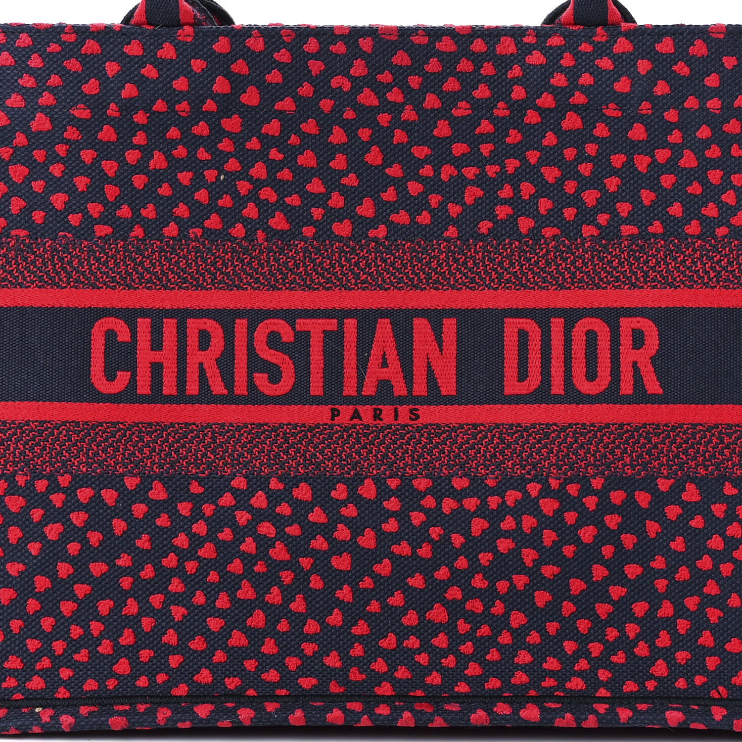 Home Dior Dior Tote Bags CHRISTIAN DIOR Canvas Embroidered Pop Heart I Love Paris Medium Book Tote Red Multicolor