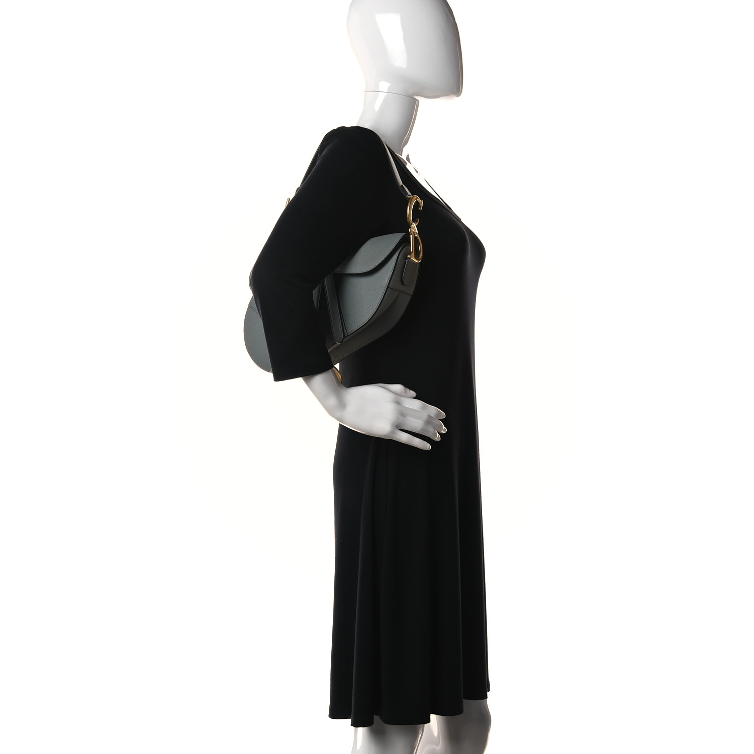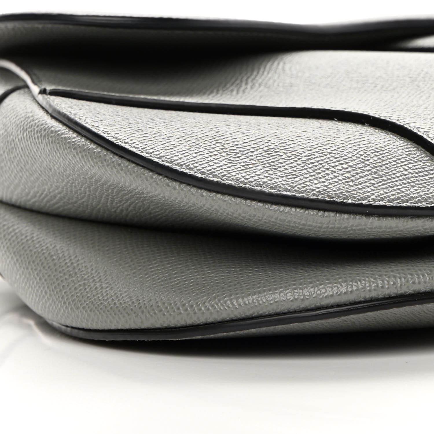 CHRISTIAN DIOR Grained Calfskin Saddle Bag Grey