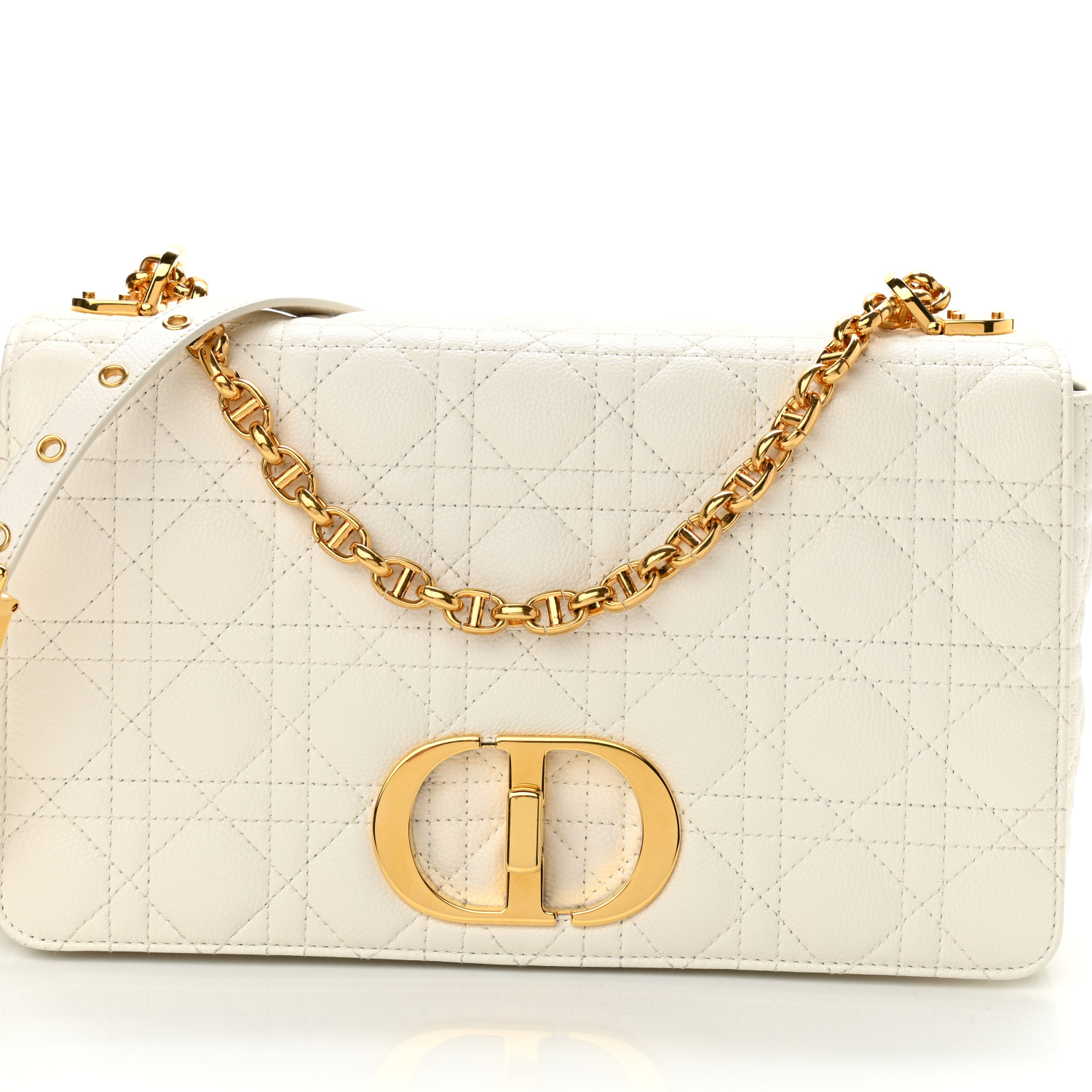 Home Dior CHRISTIAN DIOR Lambskin Cannage Large Caro Bag Ivory