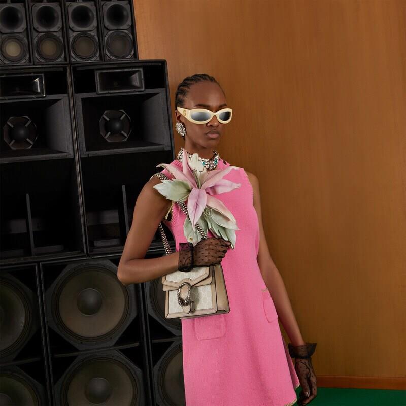 Gucci’s March of Love tells a touching story in color. GG Supreme canvas is one of the brand’s signature fabrics, inspired by archive designs from the ’30s. The classic beige and ebony designs have been reinterpreted in a refreshing combination of beige and white, conveying the brand’s enduring design essence. The pattern has also become a signature highlight on this Dionysus collection of mini bags.