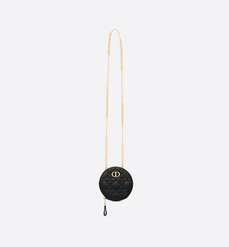 The Dior Caro round pouch is both elegant and versatile. Crafted in black supple calfskin with Cannage stitching, it features a zipped gusseted compartment to accommodate all the small essentials. The pouch, with its removable chain, may be worn crossbody and is ideal for day or evening wear.