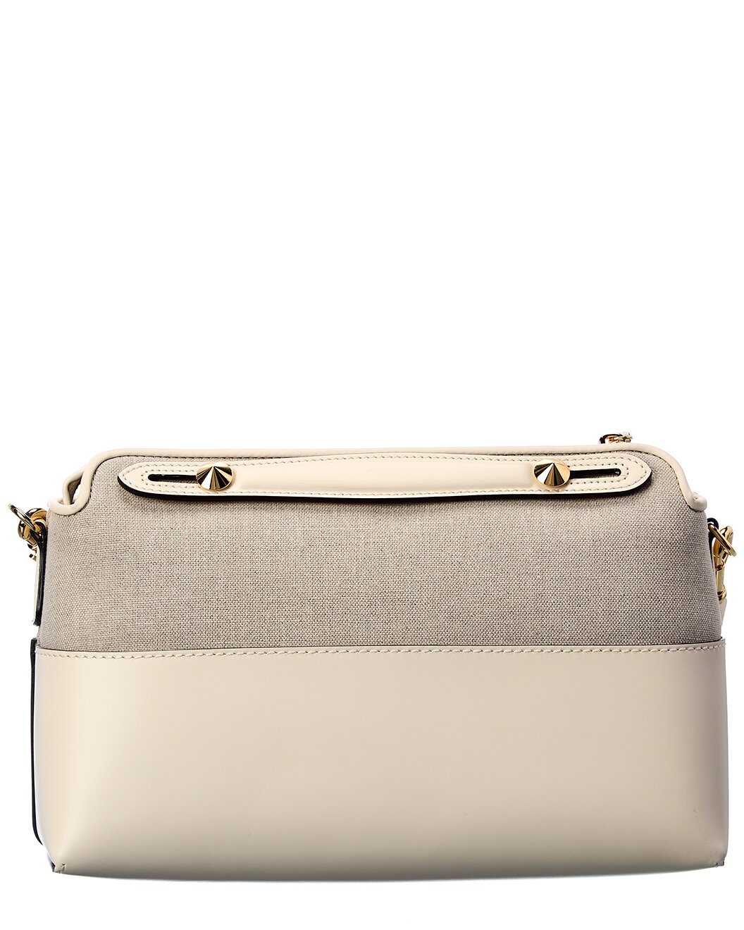 - By The Way Medium Canvas & Leather Shoulder Bag in white canvas and leather with gold-tone hardware and logo lettering