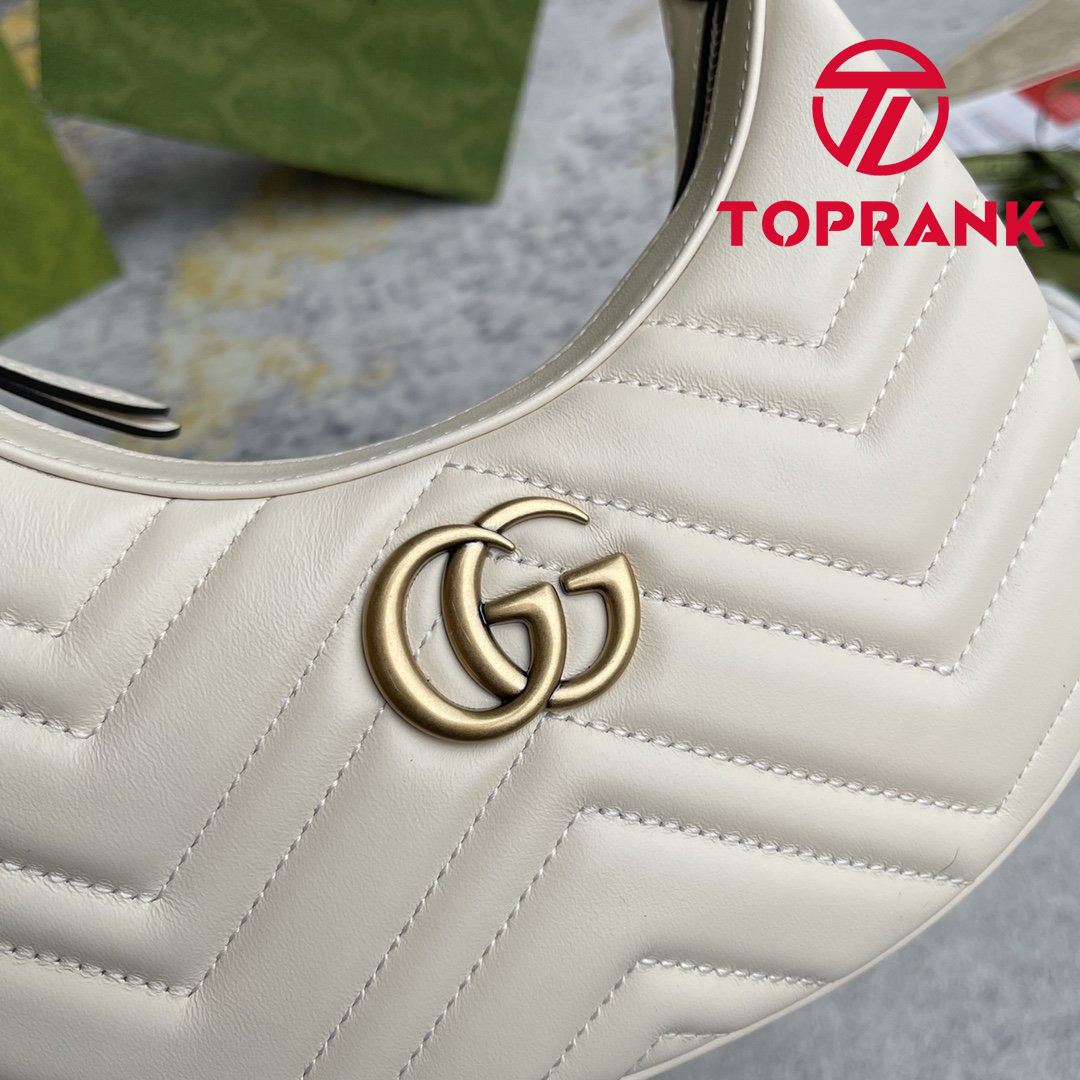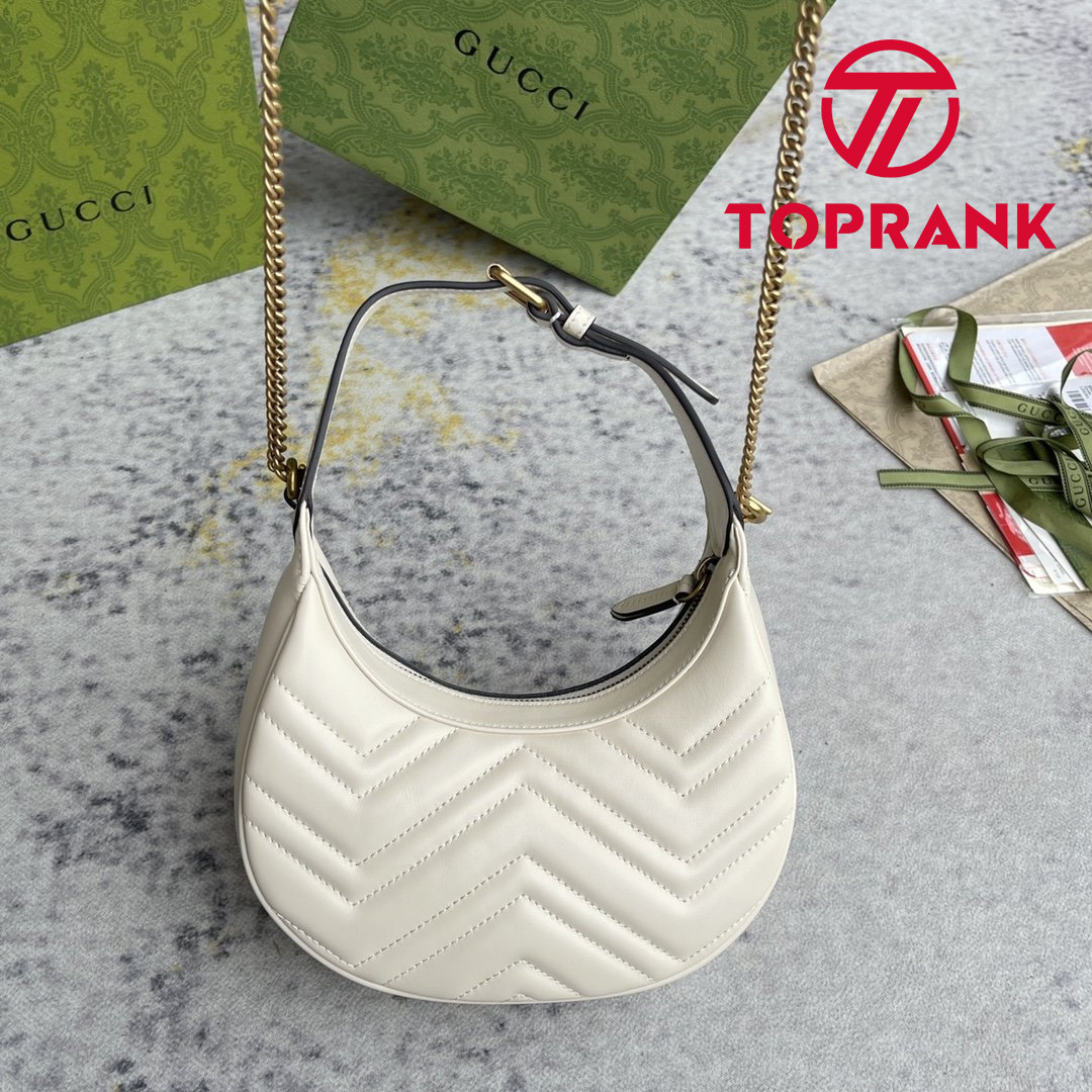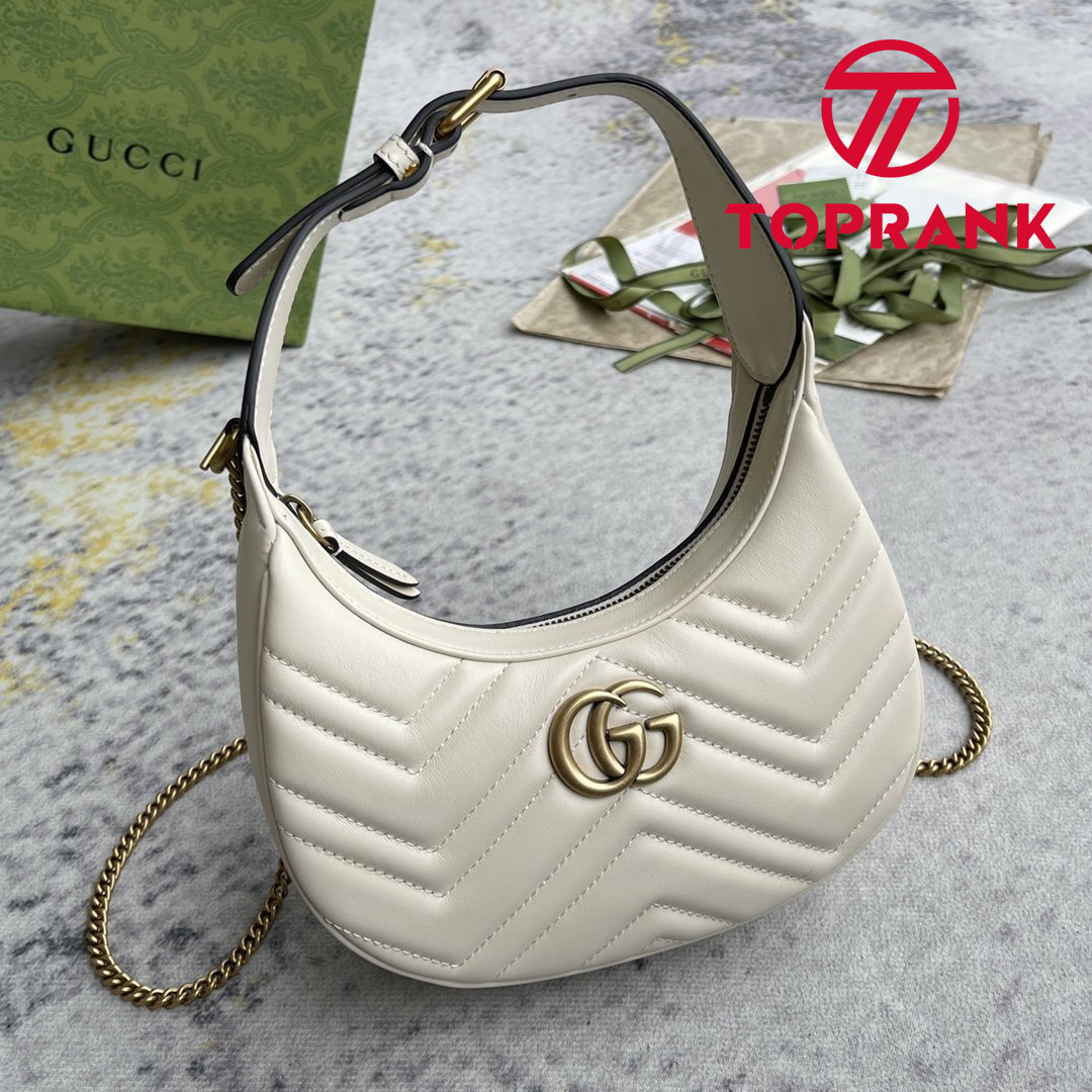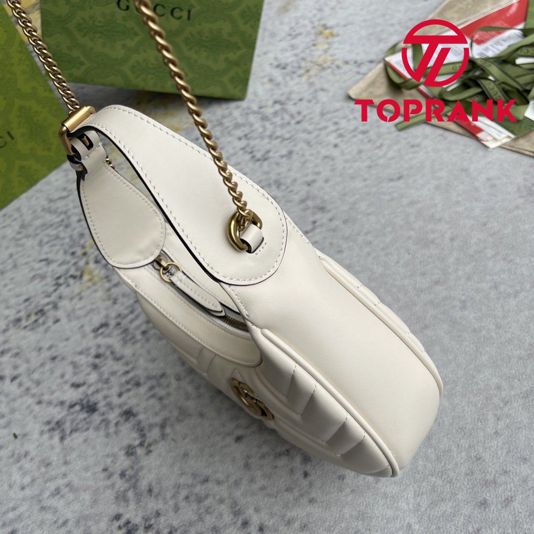 With a crescent silhouette and textured white leather, this mini bag has a defined retro feel. Each collection is a journey through different decades and eras, combining vintage elements with archival codes or contemporary details to create new designs that exist outside of space and time. The petite accessory reflects this fascination with the past, a concept that runs throughout the world of GG Marmont.