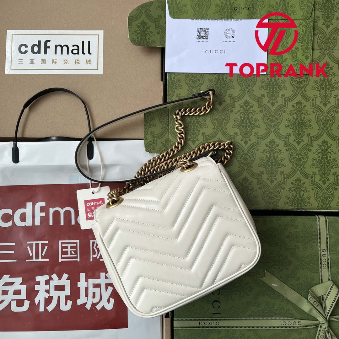 2022 New Gucci GG Marmont Silver Chian Strap Zipper Closure Double G Signature Women Colorful Diagonal Quilted Leather Crossbody Bag Small