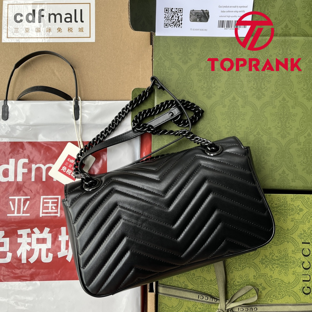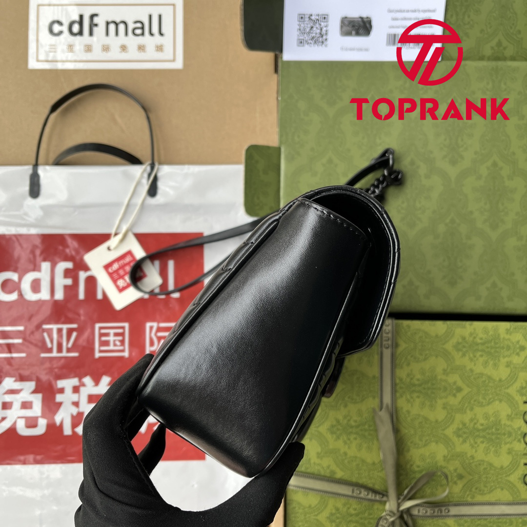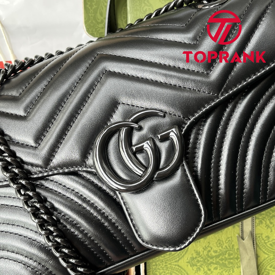 he mini GG Marmont chain shoulder bag has a softly structured shape and an oversized flap closure with Double G hardware. The sliding chain strap can be worn multiple ways, changing between a shoulder and a top handle bag. Made in matelassé chevron leather, the accessory is introduced for Gucci Love Parade with monochrome hardware.