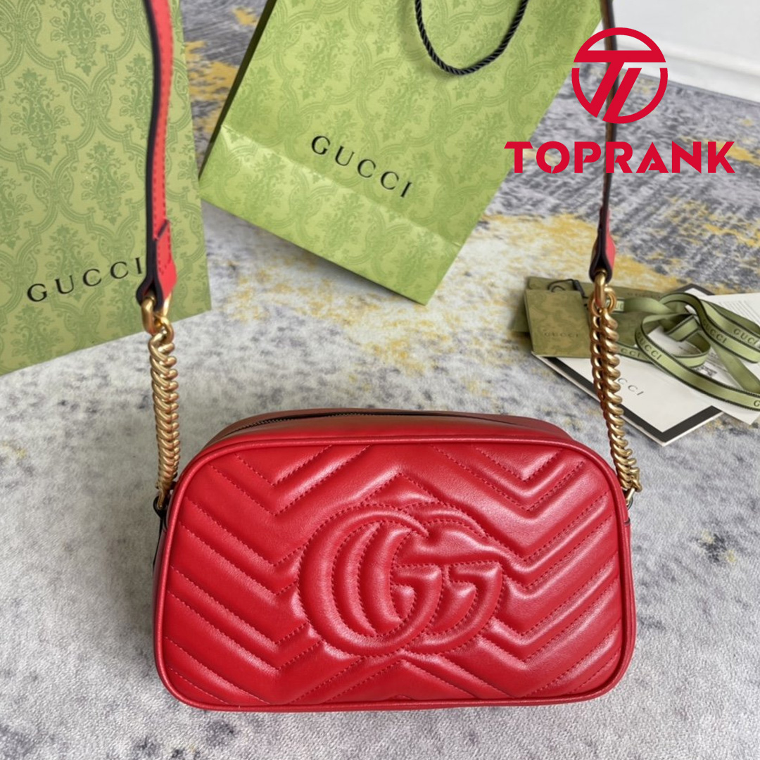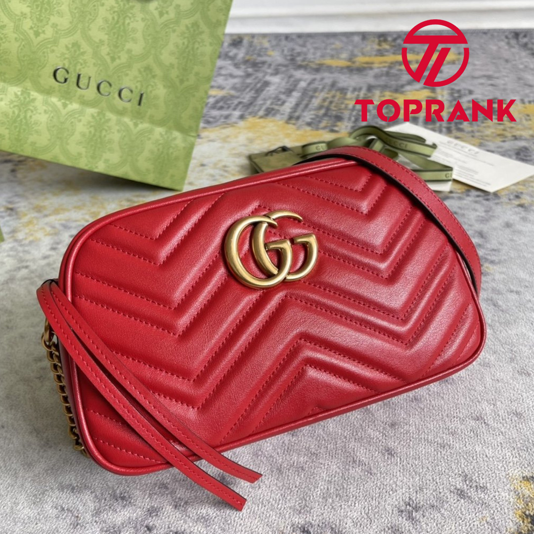 2022 New Gucci GG Marmont Silver Chian Strap Zipper Closure Double G Signature Women Colorful Diagonal Quilted Leather Crossbody Bag Small