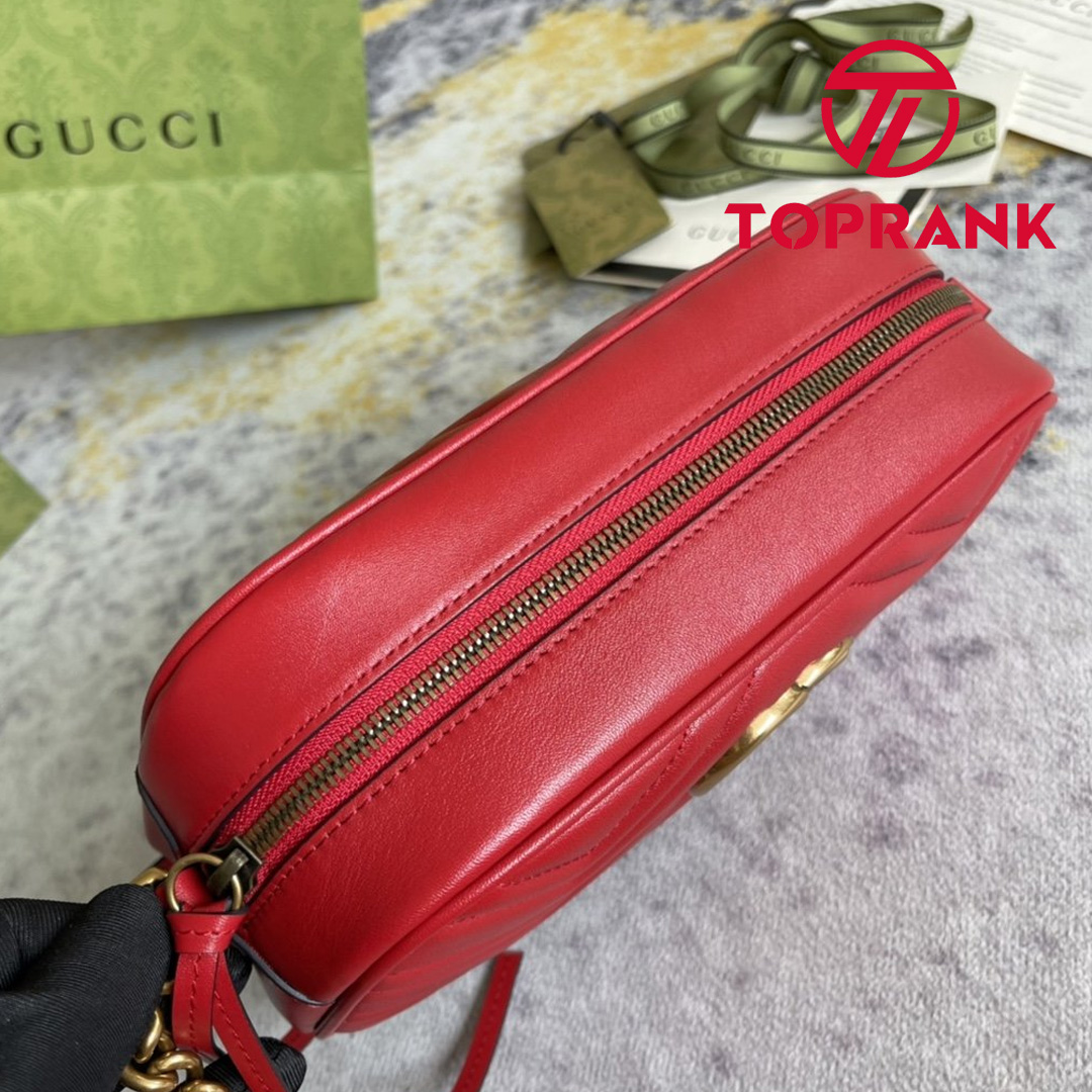 • Hibiscus red matelassé chevron leather with GG on the back