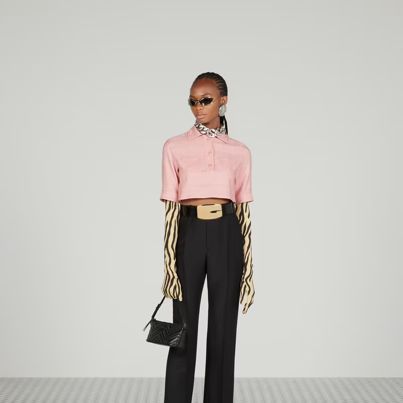 With its recognizable matelassé fabric and Double G hardware, the GG Marmont has become synonymous with the House. Continuously reinvented through the seasons, new shapes are introduced within this signature line, matching Gucci’s contemporary vision. Presented here in black leather, it’s further enriched with antique gold-toned details.