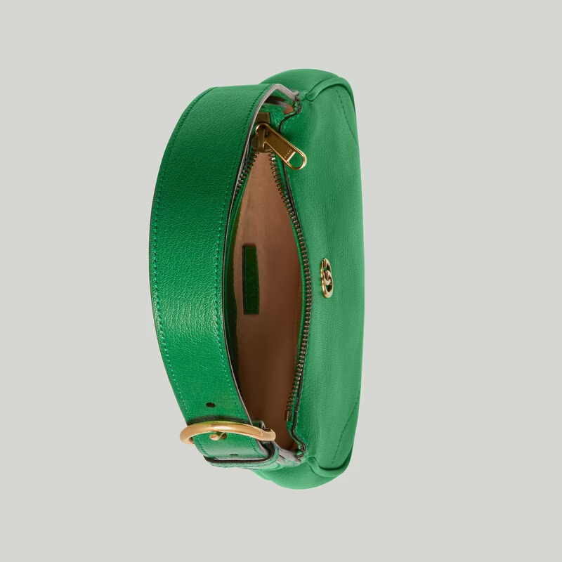A nod to styles popular during the late 1990s and early 2000s, the Aphrodite line welcomes a new shape with this small shoulder bag, which pairs the essential design with pop colours and the unmistakable Double G hardware, for a sleek yet unexpected look. Here, it’s presented in a soft green leather with a gold-toned zip closure.