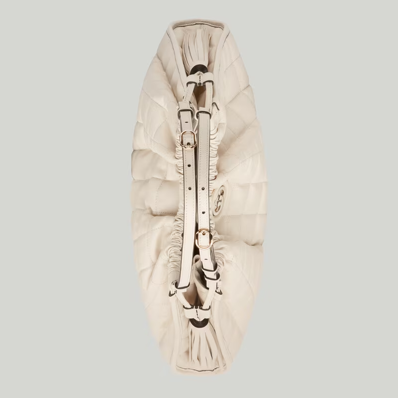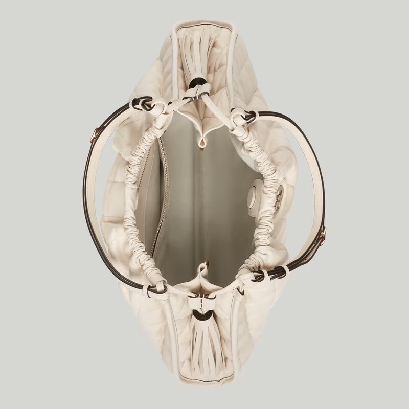 Heritage and innovation combine in this elevated version of the everyday tote. Designed with a relaxed silhouette, the new Gucci tote bag combines quilted materials with a chain strap and a roomy structure, providing style, versatility and practicality.