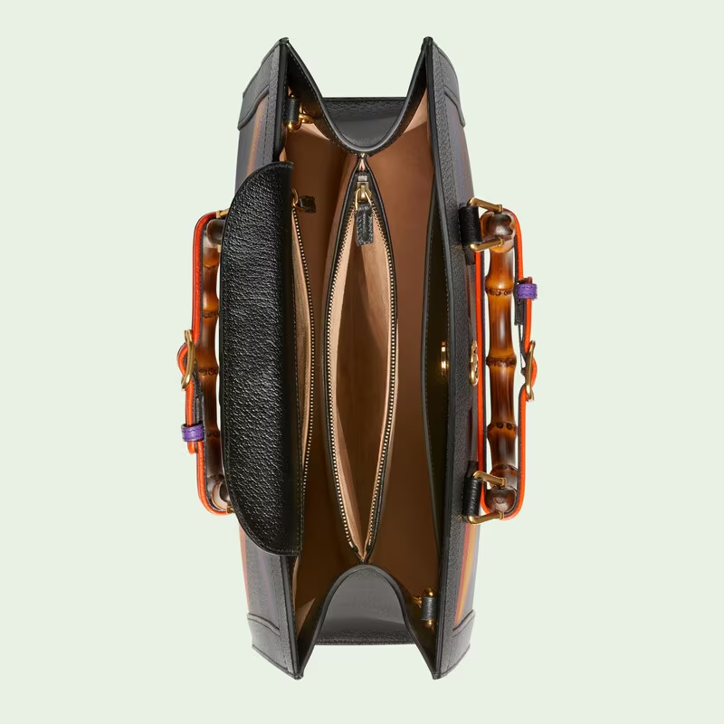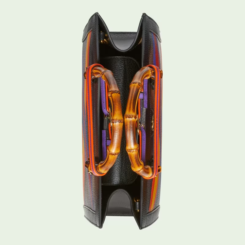 In celebration of a new year, as well as the arrival of Spring, the House presents a wide-ranging selection of colourful leather accessories featuring various combinations of materials alongside the Gucci logo. The Web stripe appears in vibrant new colourways in a contemporary revival of an archival detail. This Gucci Diana tote bag is defined by a criss-cross Web stripe.