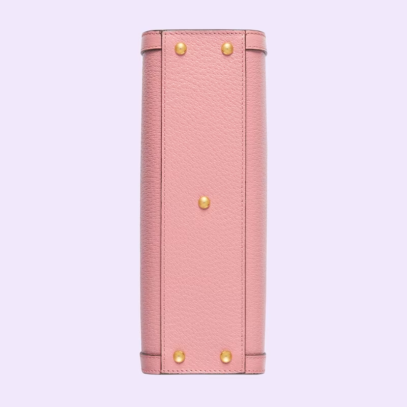 A new shape for Gucci Cosmogonie, the Gucci Diana continues to combine recognisable elements of the House with the bamboo handles and Double G hardware. Crafted from pink leather, the accessory is further accentuated by two decorative leather belts, a playful reference to the bands used to keep handles in shape.