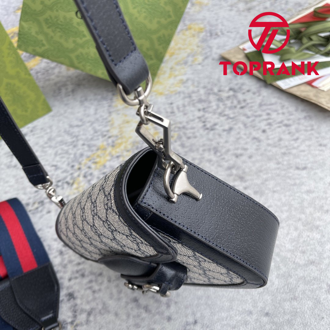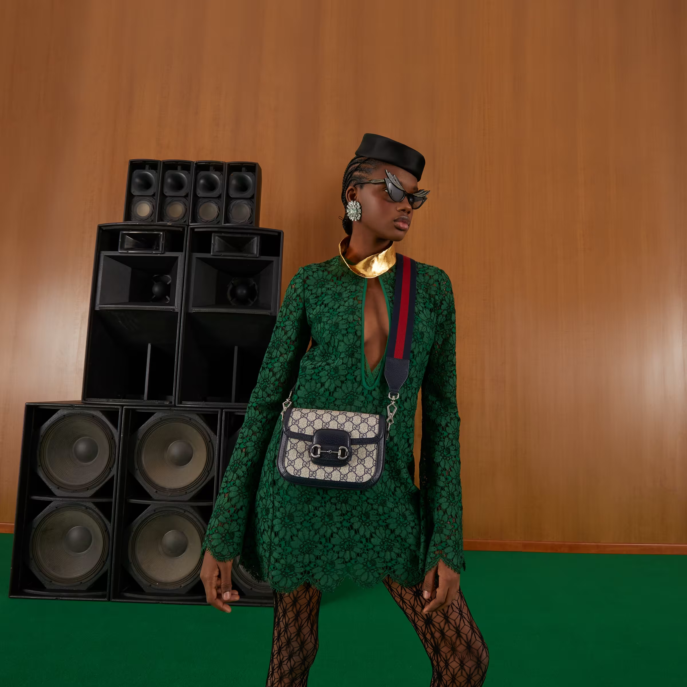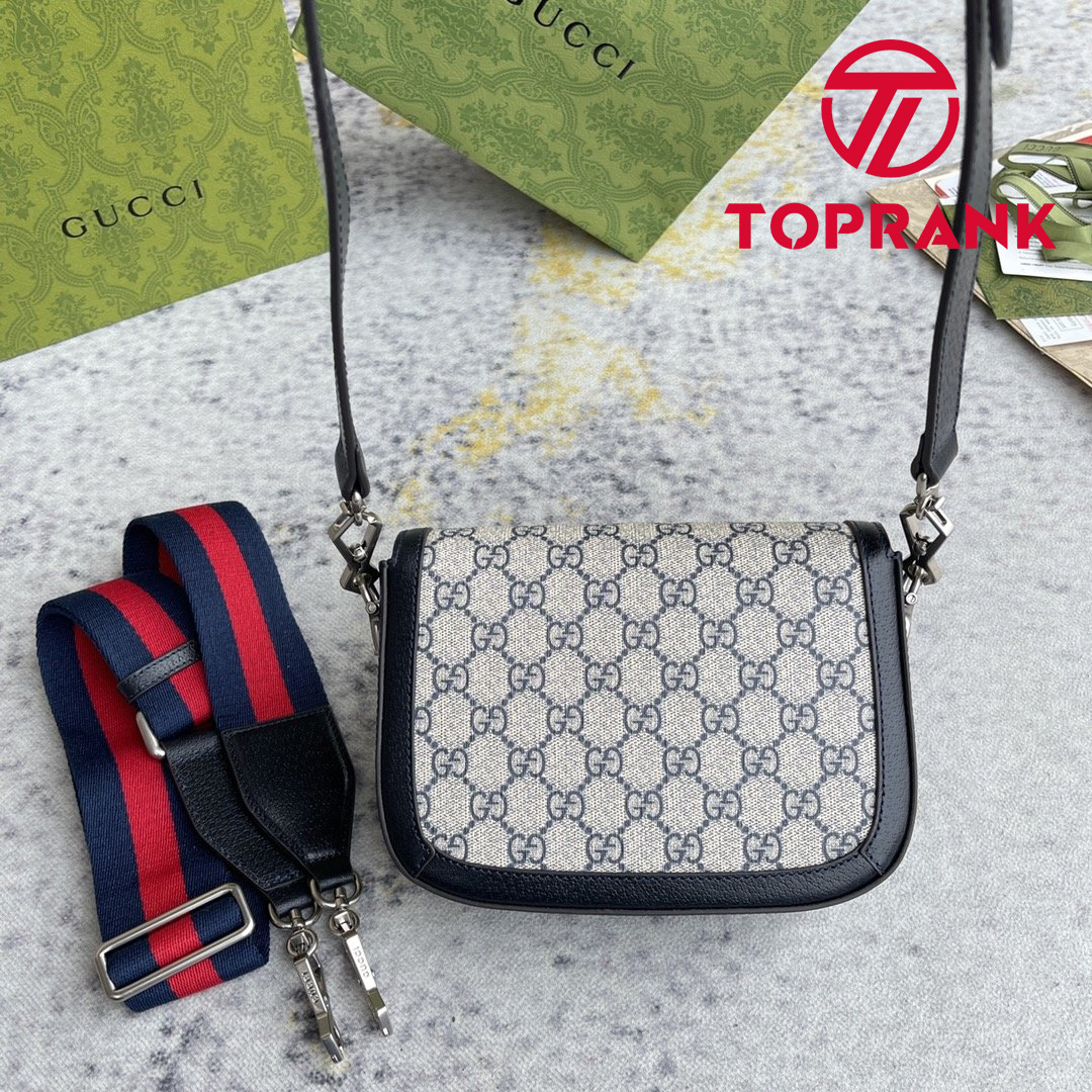 Mirroring the material’s historic origins, GG Supreme is introduced in a timeless mix of blue and beige for Gucci Love Parade. The canvas has come to the front of each collection decade after decade to become a hallmark of the House. Here, the classic palette defines this mini bag from the Gucci Horsebit 1955 line.