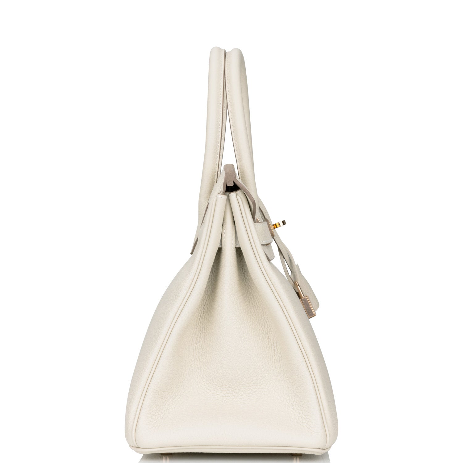 This Birkin is in Craie togo leather with rose gold hardware and has tonal stitching,front flap, two straps with center toggle closure, clochette with lock and two keys, and double rolled handles.