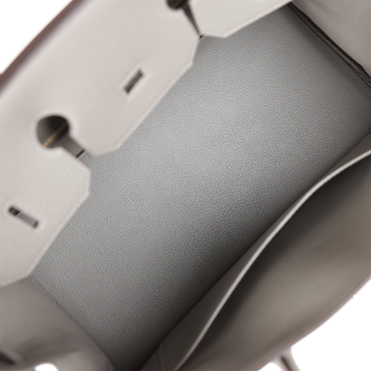 This Birkin is in Gris Meyer togo leather with gold hardware and features tonal stitching, front flap, two straps with center toggle closure, clochette with lock and two keys and double rolled handles.