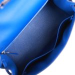 The interior is lined with Bleu Royal chevre leather and has one zip pocket with an Hermes engraved pull and two open pockets on the opposite side.