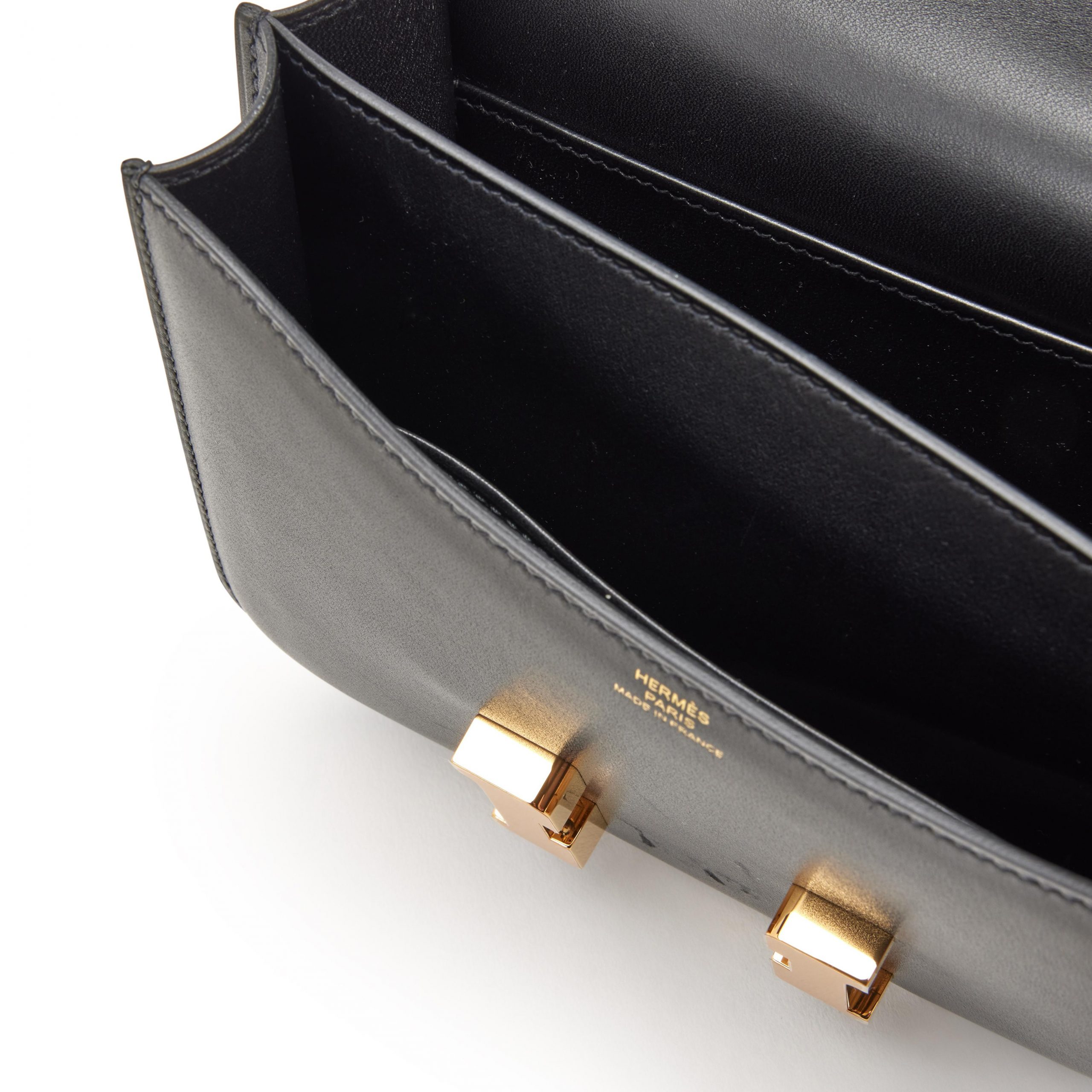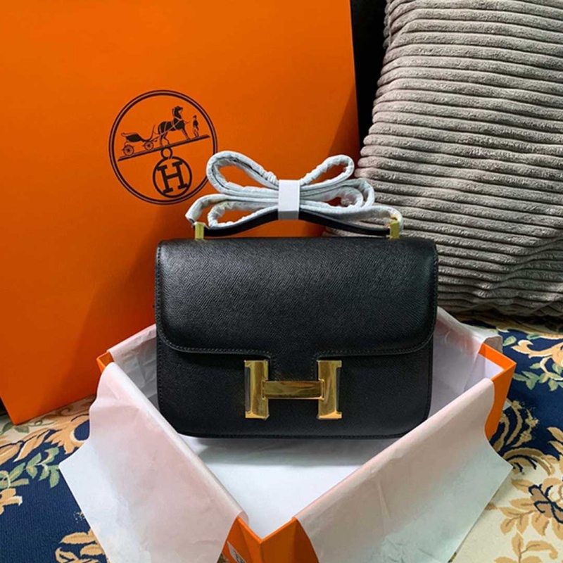 Guaranteed authentic Hermes Constance Mini 18 bag features classic Black with coveted gold hardware.A perfect day to evening bag!HERMES PARIS MADE IN FRANCE is stamped on front under flap.Comes with signature Hermes box and sleeper.NEW or NEVER WORNThe Hermes Constance bag price maintains its value as its among one of the most desired and difficult Hermes bags to acquire.Buy rare Hermes bags online at mightychic and enjoy an exceptional shopping experience.final saleBAG MEASURES:LENGTH 10″TALL 5.5″DEEP 2″STRAP:SINGLE 22″ DOUBLE 12″CONDITION:NEW or NEVER WORN