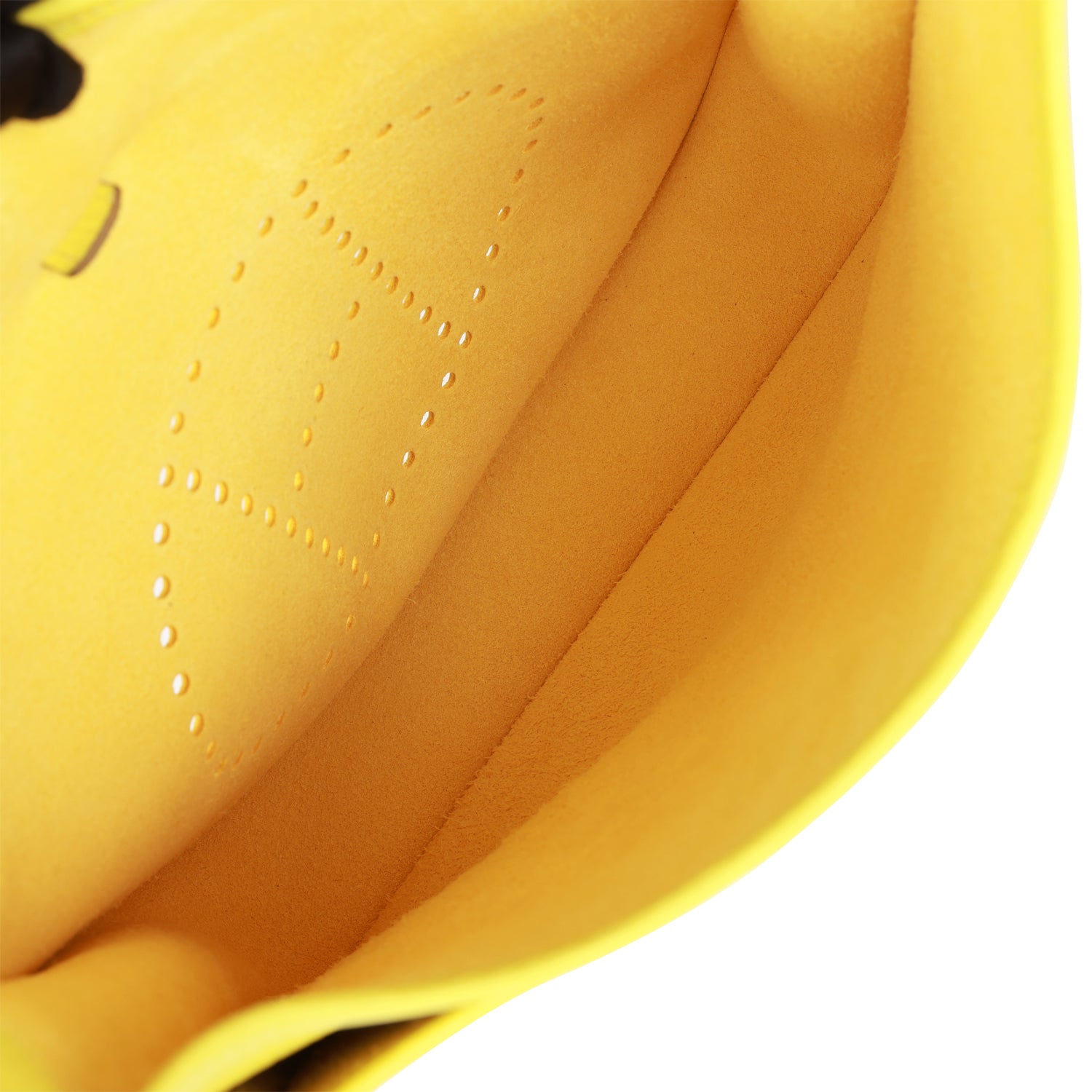 This Evelyne is in?Lime clemence leather with?palladium hardware and has tonal stitching, pull tab top closure and Lime?removable canvas and leather shoulder/crossbody strap.