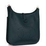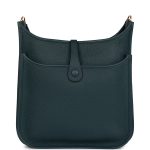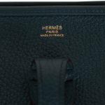This Evelyne is in Vert Cypress clemence leather with gold hardware and has tonal stitching, pull tab top closure and Vert Cypress removable canvas and leather shoulder/crossbody strap.