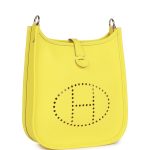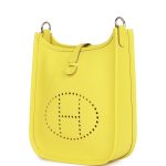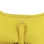 This Evelyne TPM is in?Lime clemence leather with?palladium hardware and features tonal stitching stitching, pull tab top closure and a?quadrille removable canvas and leather shoulder/crossbody strap.