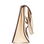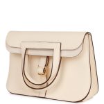 This Halzan is in Nata clemence leather with gold hardware and has tonal stitching,front loop closure, foldabled top handles, long cross body strap for multistyle wear.