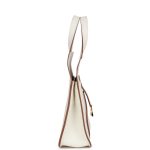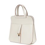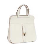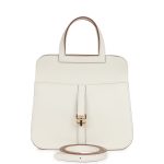 This?Halzan is in?White evercolor leather with?gold hardware and has tonal stitching, foldable top handle and crossbody strap for multiple ways to wear.