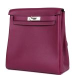 This Kelly Ado Backpack is in Anemone Evercolor leather with palladium hardware and has tonal stitching, two straps with front toggle closure, and two adjustable shoulder straps.