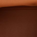 The interior is lined in gold chevre and has one zip pocket with Hermes engraved pull and two open pockets on the opposite side.