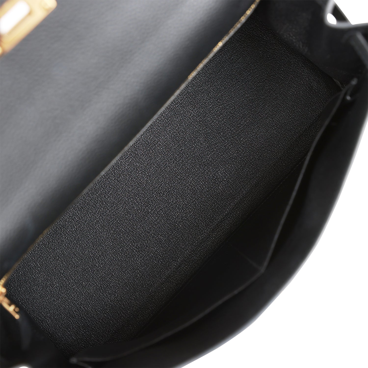 The interior is lined with black chevre and features one zip pocket with an Hermes engraved pull and two open pockets on the opposite side.
