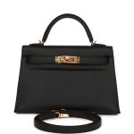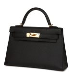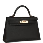 Hermes Kelly Sellier 20 Black Epsom Gold Hardware