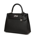 Hermes Kelly Sellier 25 Black Epsom Palladium Hardware