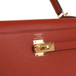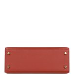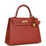 This?Sellier Kelly is of?Rouge?Venetian epsom leather with?gold hardware and has?tonal stitching, front flap, two straps with center toggle closure, clochette with lock and two keys, single rolled handle and an optional shoulder strap.
