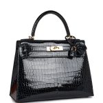 Hermes Kelly Sellier 28 Tri-color Black, Vert Rousseau and Vert Bosphore Shiny and Matte Alligator Palladium Hardware $2,813.00 $435.00