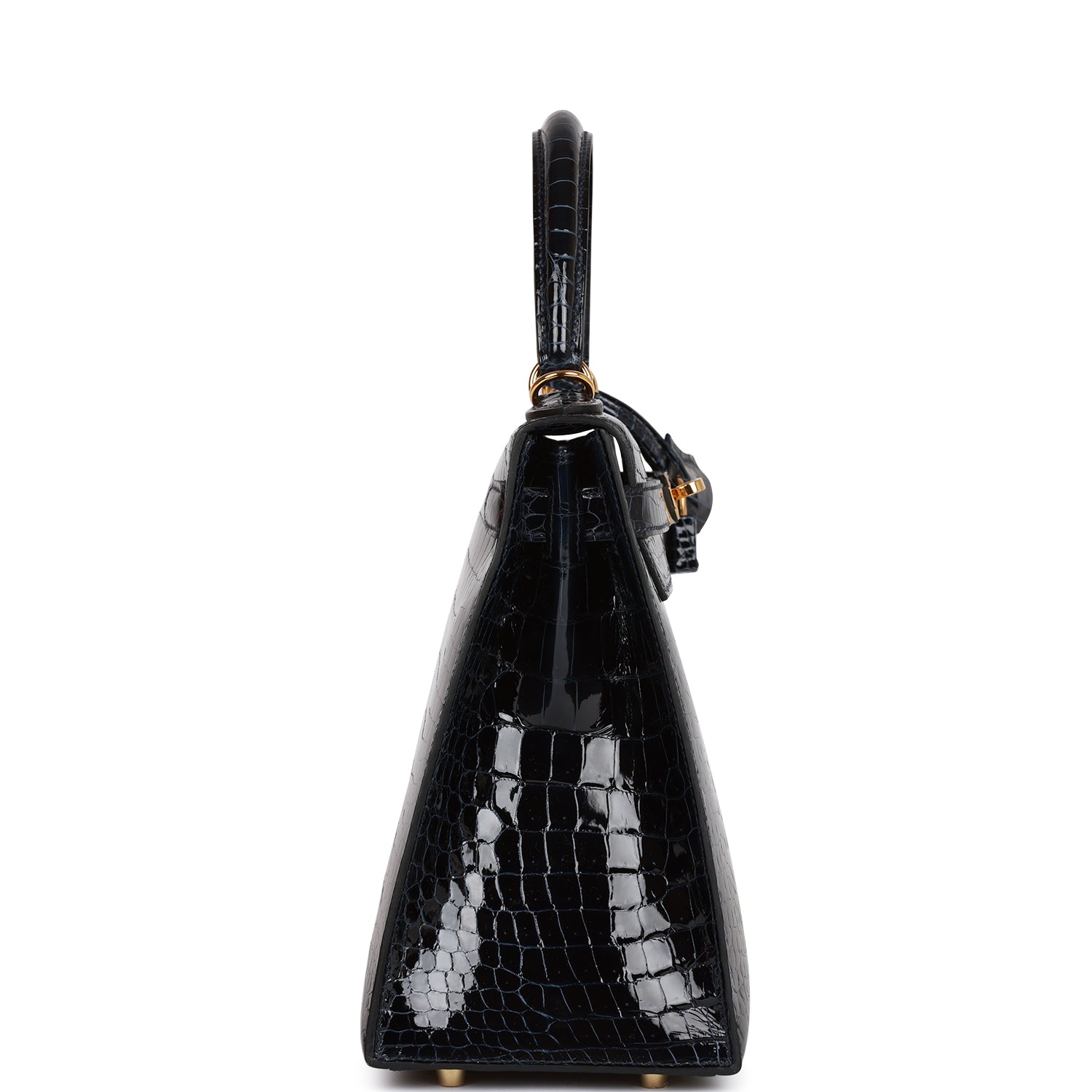 Home Hermès Hermès Kelly Handbags Hermes Kelly Sellier 28 Bleu Baltique Shiny Porosus Crocodile Gold Hardware