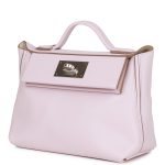 This 24/24 bag is in Mauve Pale evercolor and swift leather with palladium hardware and has tonal stitching, front turnlock closure, open rear pocket, single flap top handle and removable shoulder strap.
