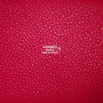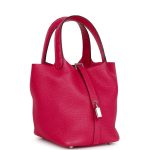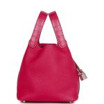 This Picotin is in Framboise clemence leather with gold hardware and has tonal stitching with two Framboise matte alligator top handles.