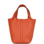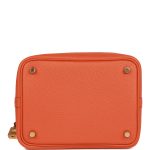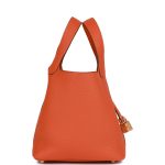 This Picotin Lock is in Orange clemence leather with gold hardware and has tonal stitching with two top handles.