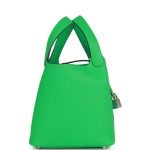 This Picotin Lock is in?Vert Comics?clemence leather with?palladium hardware and has tonal stitching with two top handles.