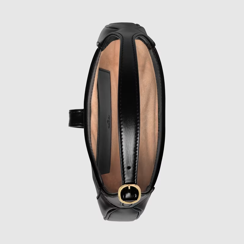 The reintroduction of the Jackie bag in a mini size for Fall Winter 2020 presents a new take on a historical Gucci icon. Brought back to the forefront, the recognizable shape is presented in black leather and enhanced with an additional, detachable shoulder strap. Attached to the bag with a buckle closure, the second strap adds a contemporary feel to the archival style, providing new ways to wear—from top handle, shoulder to cross body. The Jackie 1961: available exclusively in Gucci stores and on Gucci.com