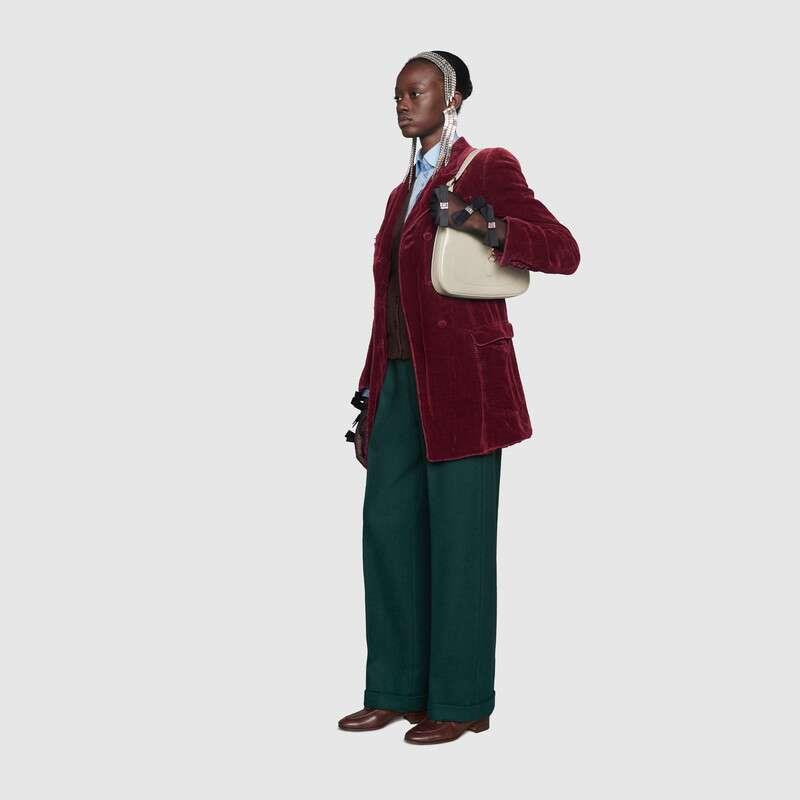 The classic Jackie 1961 bag has been reimagined for the Fall/Winter 2020 collection. This season, this recognizable bag returns to the forefront in white leather with an additional detachable shoulder strap. The second shoulder strap can be fastened to the handbag with a buckle, adding a modern style to the archive design, creating a variety of carrying options such as hand, shoulder or cross-body.