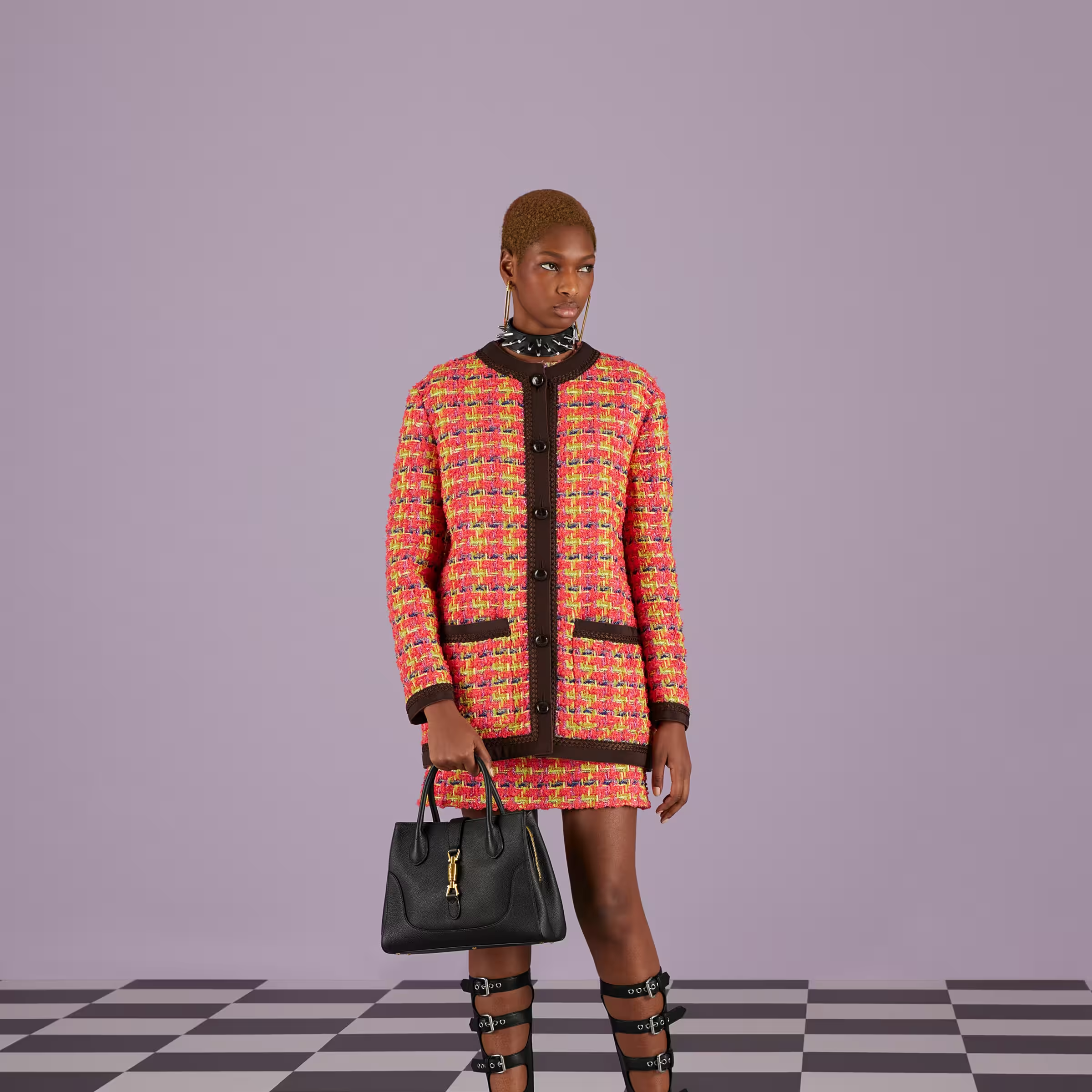 - Gold-toned hardware