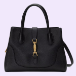The world of Jackie 1961 is enriched with a small tote bag finished with a detachable shoulder strap. Presented in natural grain leather in a classic black hue, the small sized style is defined by the emblematic piston closure.