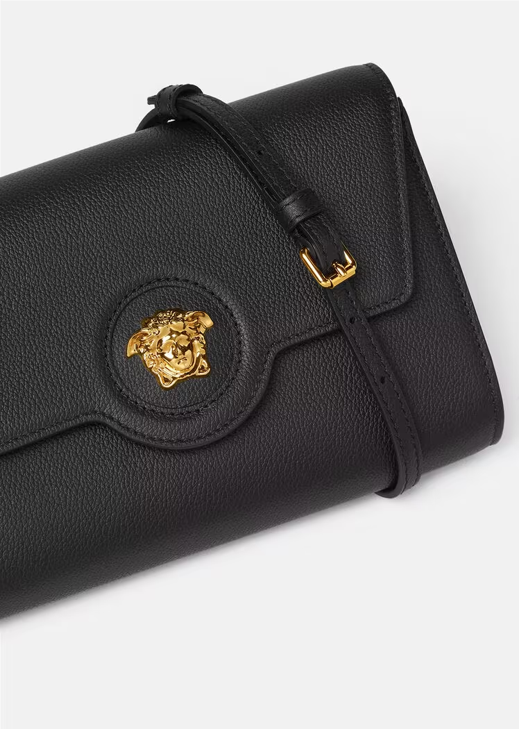 A versatile design, this crossbody bag is crafted in Italy from lightly grained calf leather. The contemporary style is adorned with a three-dimensional Medusa plaque – the same décor found on the doors of Versace’s Milanese villa.